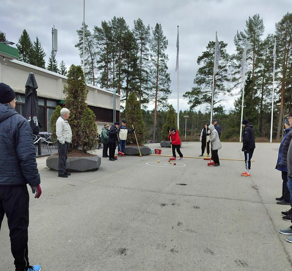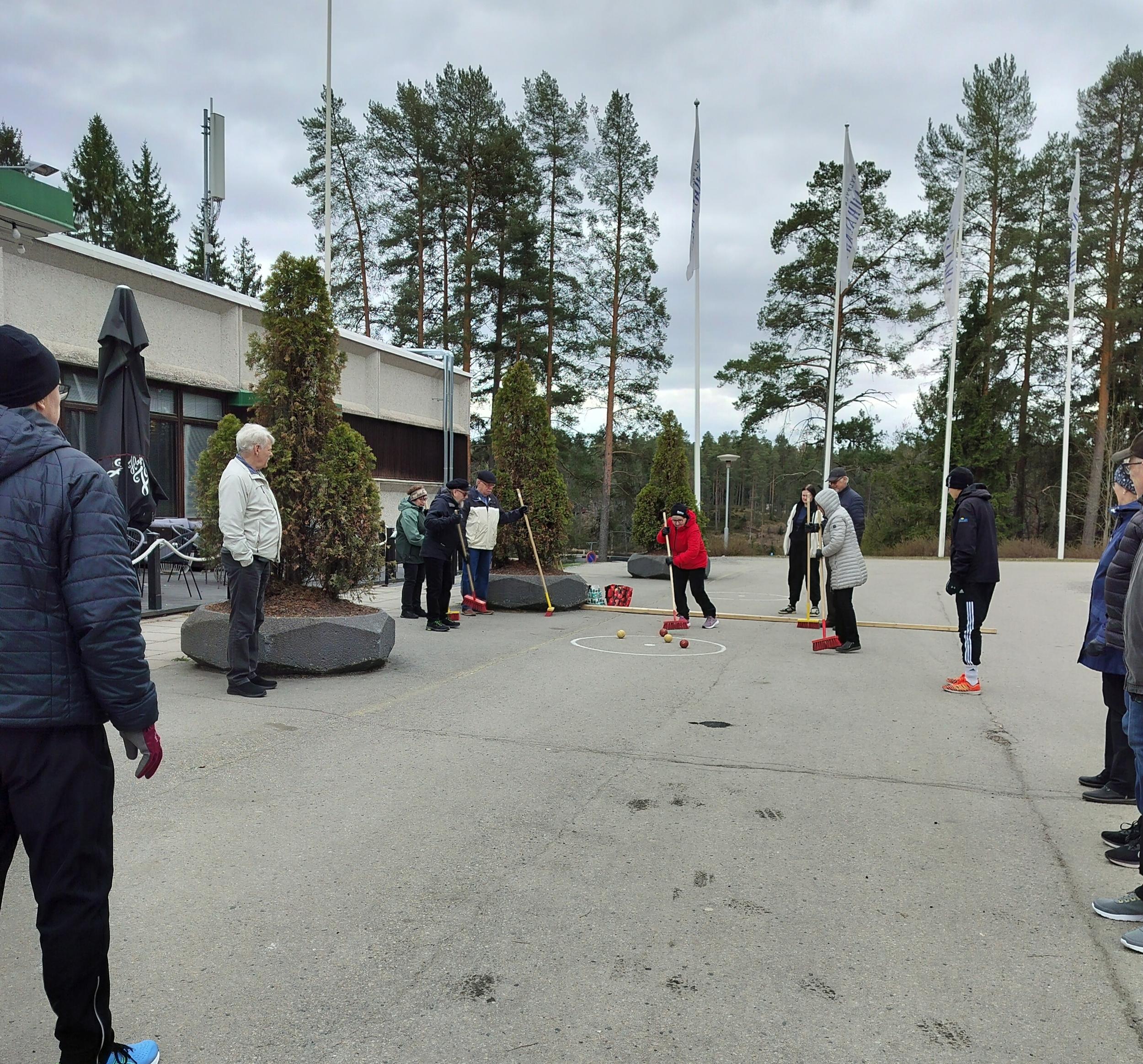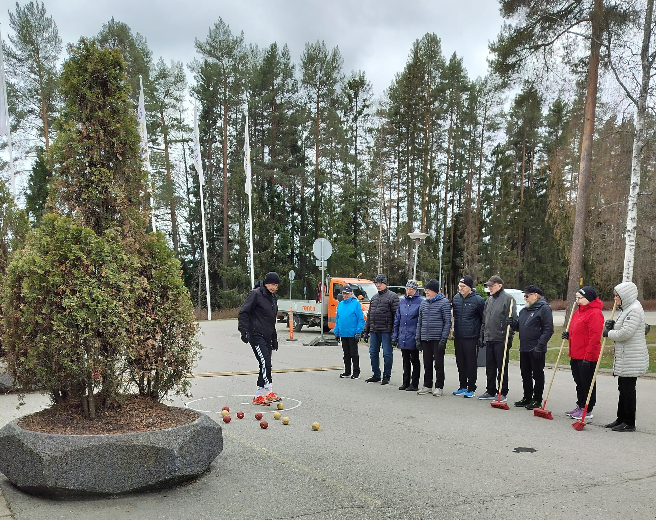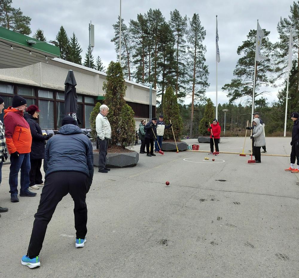 Yksi Rauhanlahden aktiviteeteistä vesiliikunnan ohella oli Rauhalahdessa kehitetty Kurlaus, jota Aki ja harjoittelija Anki opettivat keskiviikkoaamuna. Kurlaus on yksinkertainen pihapeli, jonka oppii ihan kuka tahansa ja suhteellisen nopeasti. Pelivälineinä toimivat punaiset ja keltaiset puupallot, samanväriset katuharjat ja asfalttiin piirretty nännipiha, jonne niitä palloja piti sitten mahdollisimman keskelle saada kurlattua. Keltaiset otti voiton kolmen kierroksen jälkeen. Peliohjeet ovat vielä työn alla...