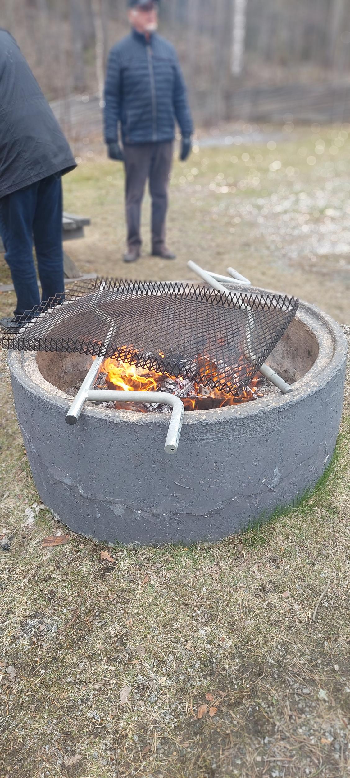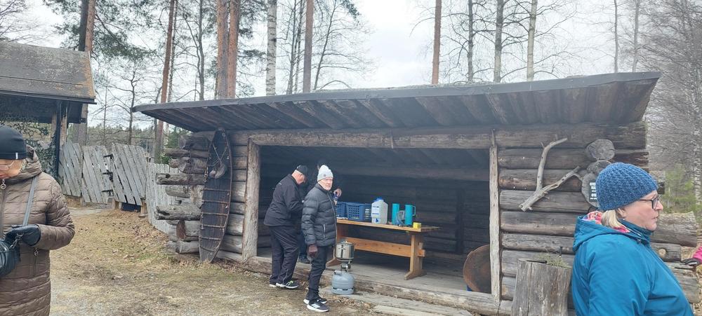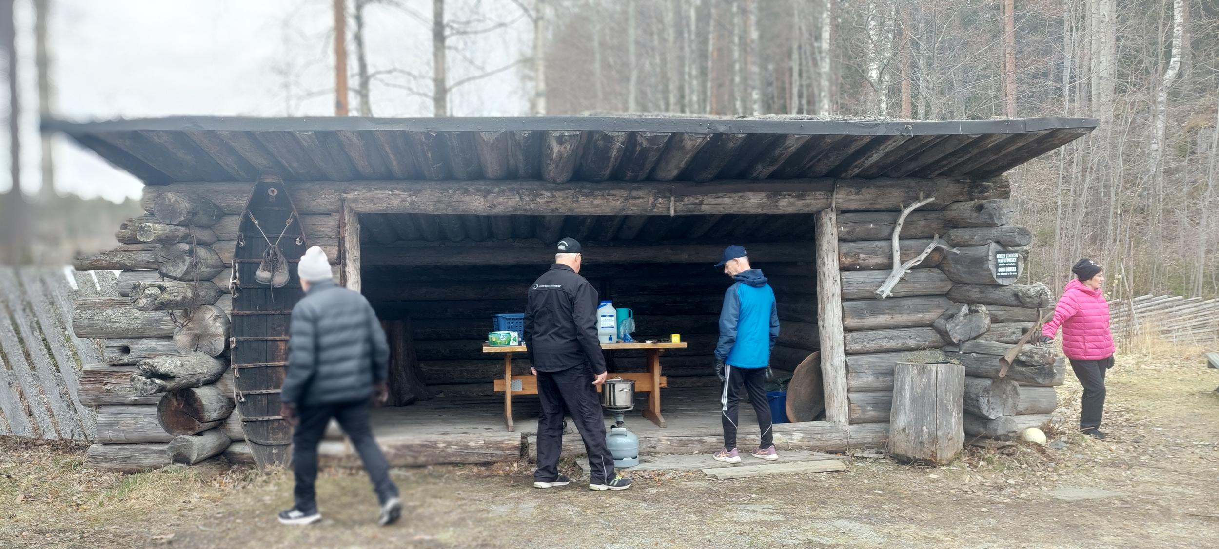 Kurlauksesta lähdettiin makkaranpaistoon jo tutuksi tulleelle Jätkänkämpän laavulle. Oikeastaan menimme niin sanottuun "valmiiseen pöytään". Siellä oli makkarat ja nokipannukahvit jo tulilla. Antit olivat olleet ahkeria. Kyllä sanon, että maistui hyvälle!!! Makkaran ja kahvien jälkeen osa suuntasi lähialueen parin kilometrin luontopolulle. Jätkänkämppä sijaitsee Kallaveden rannalla, pihapiiriin kuuluu Jätkänkämpän lisäksi savusauna ja parit laavut ja se luontopolku.